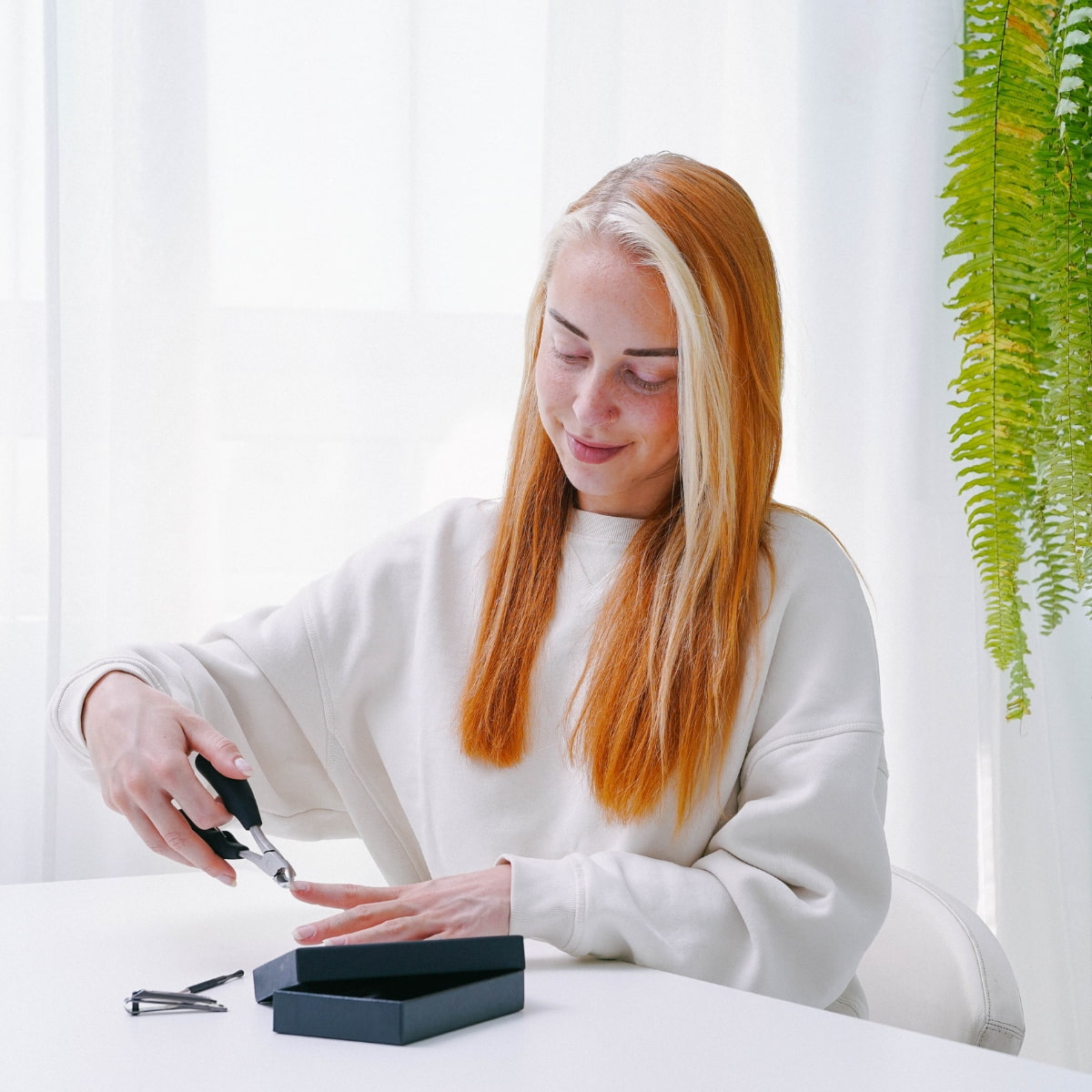 Uw nageltang en vijl worden verpakt in een stijlvol doosje die u overal makkelijk mee naar toe kan nemen.